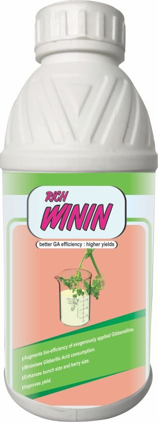 Rich Winin is a specialized agricultural solution designed to enhance the effectiveness of gibberellins (GA) for improved crop yield and quality. It is formulated to be used as a replacement for water when preparing GA solutions, ensuring better absorption and performance. By mixing 5 ml of Rich Winin per liter of water (or 100 ml per 20 liters), farmers can create an optimal GA application medium. Whether the farming practice involves dissolving 1 g of GA in 20 liters of water for a 50 ppm solution, Rich Winin ensures that the same GA dosage, when mixed with its formulation, delivers superior results in plant growth and productivity.
